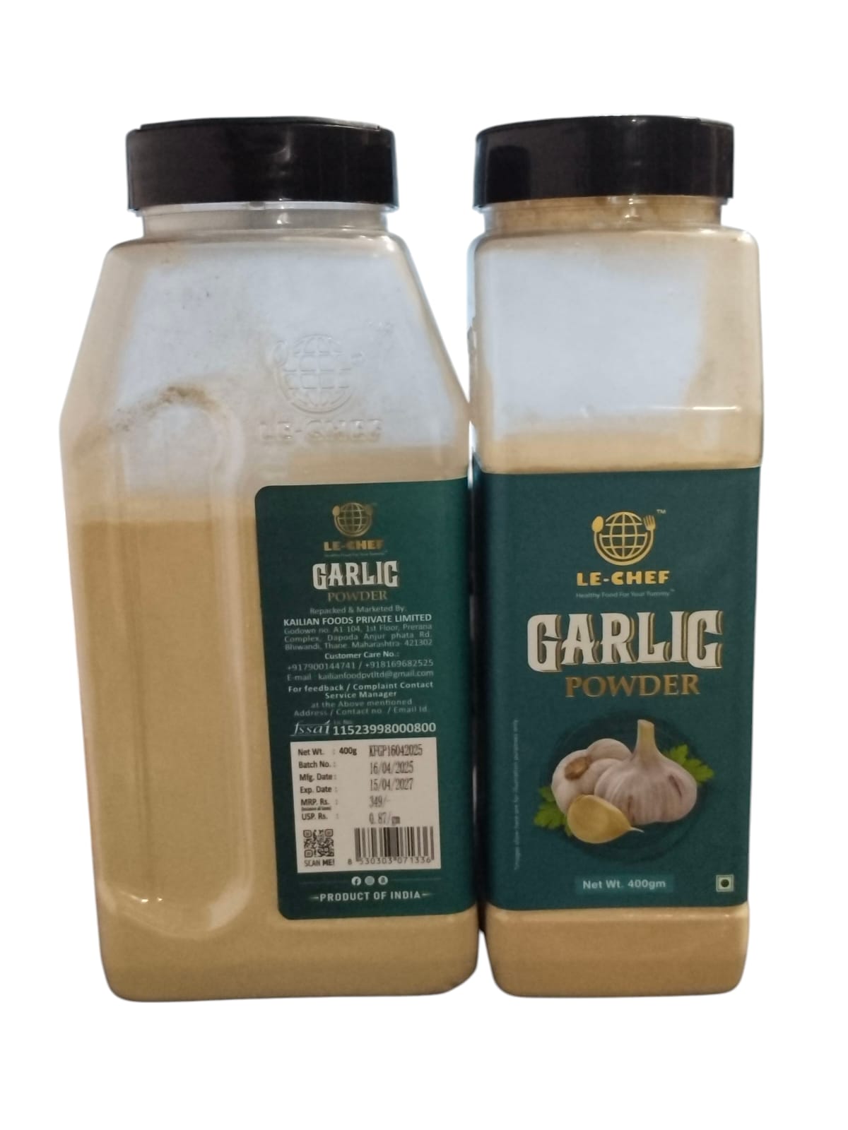 Pure garlic powder made from carefully selected fresh garlic bulbs,finely ground to preserve the authentic flavour and aroma