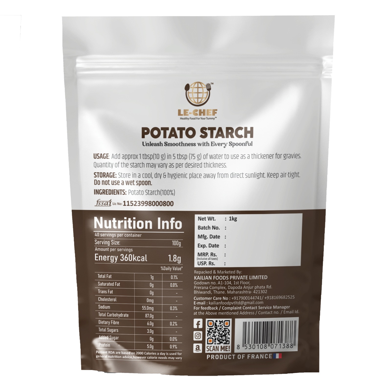 • Premium-Quality Starch: Le Chef Potato Starch is a fine, white powder derived from high-quality potatoes, known for its superior thickening and binding properties.