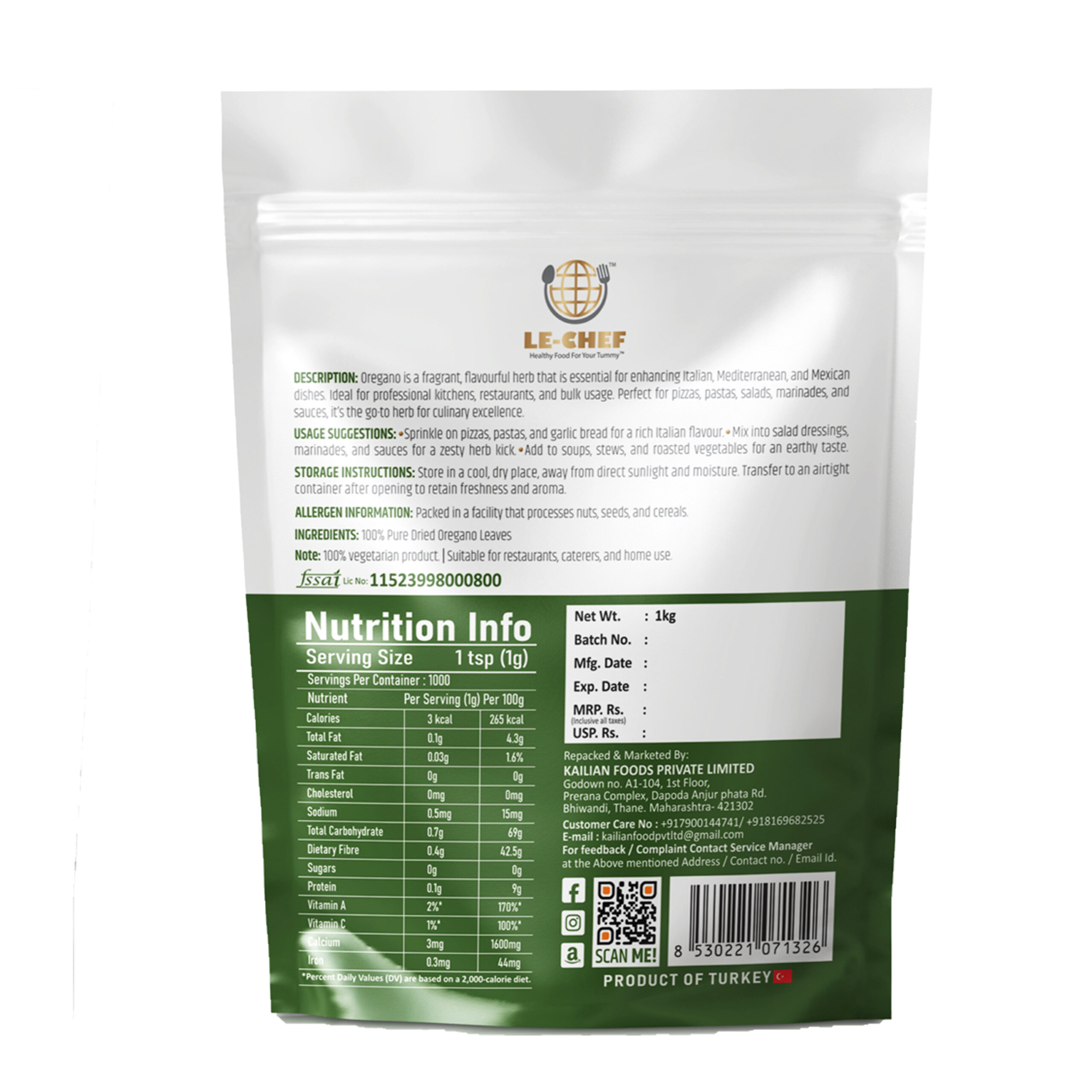 - Bold & Aromatic Flavor: Le Chef Oregano is expertly dried to retain its strong, earthy aroma and slightly bitter, peppery taste—perfect for enhancing a variety of savory dishes.